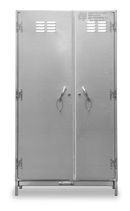 Los armarios están fabricados con esqueleto de tubo de acero galvanizado calidad S-275-JR.Estantes, forro, bandeja y puertas fabricadas en chapa de acero galvanizado calidad S-275-JR de 1 mm de espesor. Herrajes y componentes en diferentes acabados: niquel, cromo y zinc. Como sistema de protección del usuario dentro del entorno laboral, se dota a las puertas de los armarios de un protector polimérico situado a lo largo de todo el filo de cada hoja.