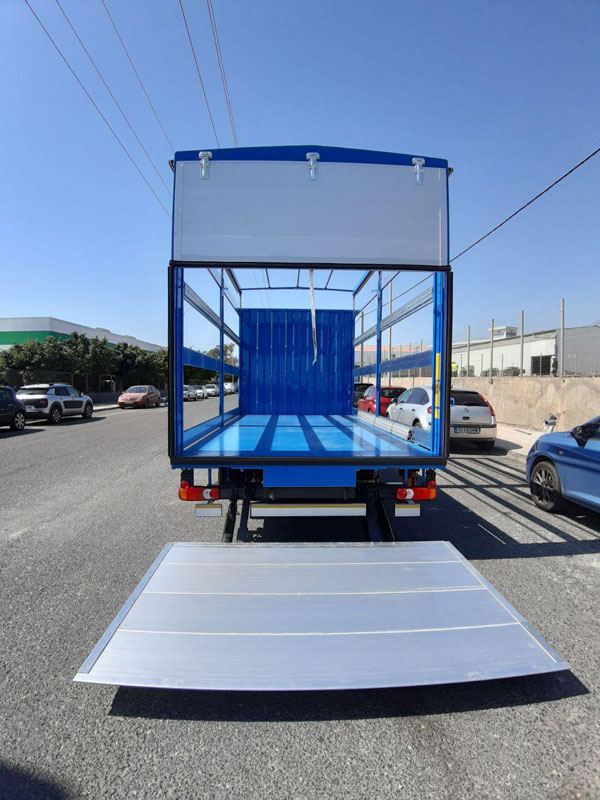 En caso de optar por la variación de carrocería tipo semilonas correderas o semitauliner, se instalarán laterales abatibles y desmontables de aluminio, que podrán servir a su vez para la sujeción de la lona.